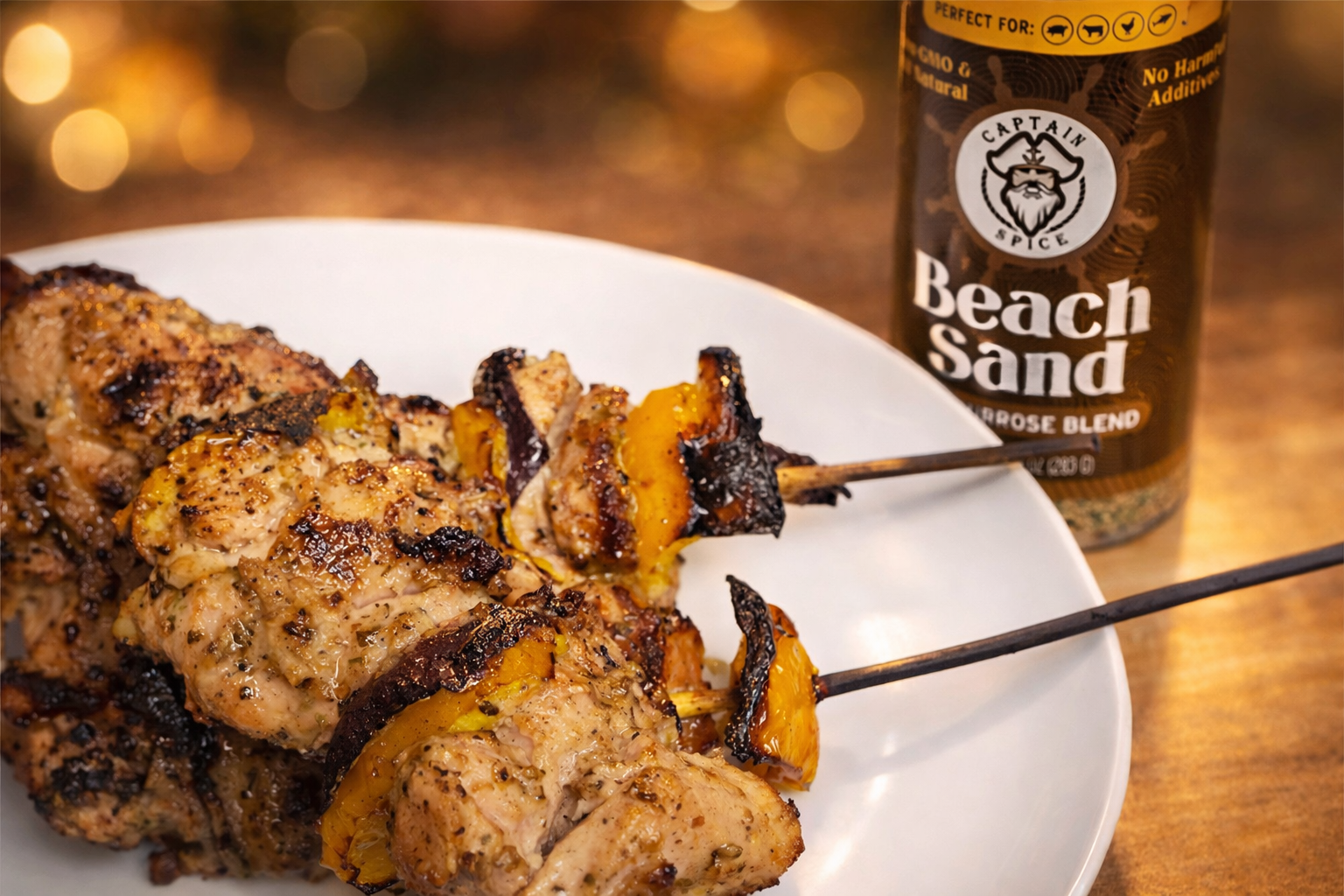 This is the kind of meal that turns a simple dinner into something unforgettable. Juicy grilled chicken skewers coated in Beach Sand seasoning, finished with